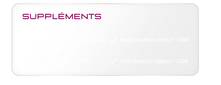 Tout déplacement excédant un rayon de 15 km sera facturé au tarif forfaitaire de 20 €.